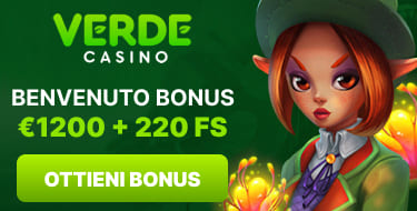 Possiamo dire che questo è il bonus che vi assicura una prima accoglienza non da poco. Sebbene un’offerta di Verde casinò senza deposito non sia all’ordine del giorno, questo benvenuto offre ai nuovi clienti un bonus sul deposito di 1.200 euro distribuito su quattro primi versamenti effettuati e 220 giri gratuiti su uno dei giochi di slot machine selezionati da noi.